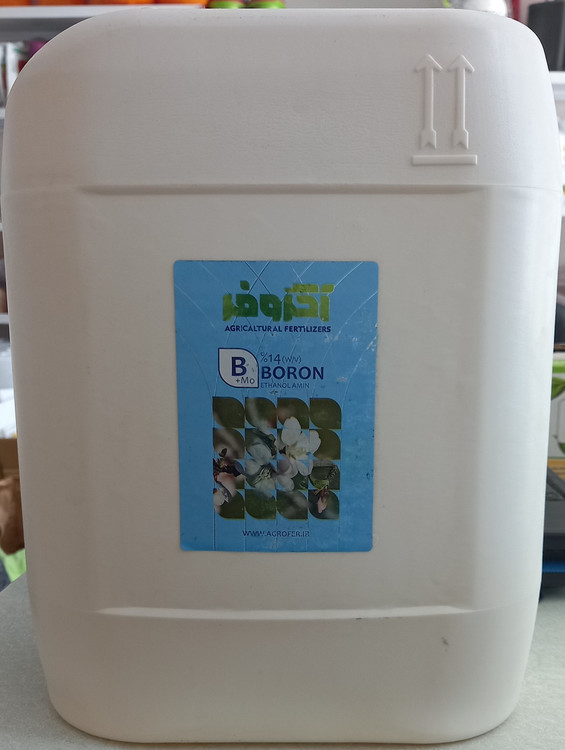 گیاهان به مقدار کمی بور نیاز دارند و جذب آن بهصورت یکی از فرمهای آنیونی انجام میشود. بور توسط گیاه از طریق ریشه جذب میشود و از طریق آوندهای چوبی به سمت برگها و سایر قسمتهای گیاه حرکت میکند. بور در فرآیندهای فیزیولوژیکی مختلف مانند تقسیم و افزایش طول سلول، متابولیسم کربوهیدرات و تثبیت نیتروژن نقش اساسی دارد. بور اتانول آمین 14 درصد اگروفر، کودی مایع حاوی 14 درصد بور به فرم کلات، اتانول آمین و مولیبدن است. اتانول آمین به جذب و انتقال عناصر غذایی در گیاه کمک میکند. در واقع اتانول آمین به عنوان یک عامل کلات کننده عمل میکند و به سایر عناصر غذایی ضروری مانند کلسیم، منیزیم و آهن متصل میشود و جذب آنها را برای گیاه آسانتر میکند. بور اتانول آمین شامل اثرات هم افزایی بور و اتانول آمین است که رشد و عملکرد گیاه را بهبود و جذب مواد مغذی را افزایش میدهد.
