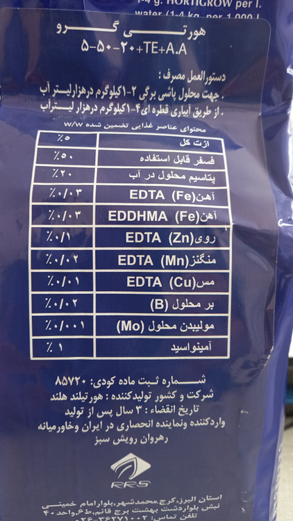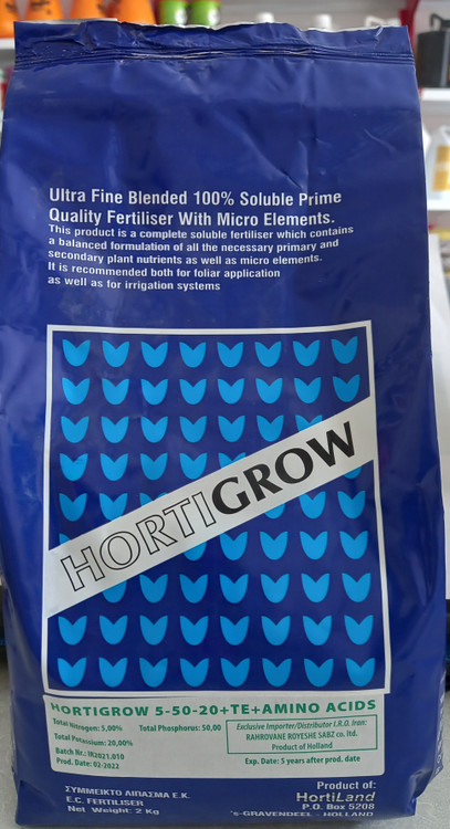 آنالیز کود NPK هورتی گرو (20-50-5) + اسید آمینه + ریزمغذی