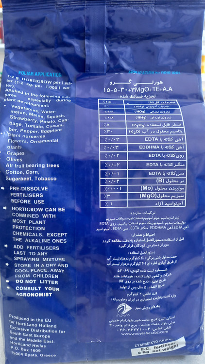 - بهترین زمان مصرف کود NPK هورتی گرو (15-5-30) در مراحل پایانی رشد گیاه و در زمان تشکیل و رسیدن میوه است.