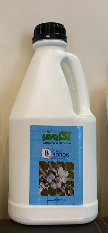 گیاهان به مقدار کمی بور نیاز دارند و جذب آن بهصورت یکی از فرمهای آنیونی انجام میشود. بور توسط گیاه از طریق ریشه جذب میشود و از طریق آوندهای چوبی به سمت برگها و سایر قسمتهای گیاه حرکت میکند. بور در فرآیندهای فیزیولوژیکی مختلف مانند تقسیم و افزایش طول سلول، متابولیسم کربوهیدرات و تثبیت نیتروژن نقش اساسی دارد. بور اتانول آمین 14 درصد اگروفر، کودی مایع حاوی 14 درصد بور به فرم کلات، اتانول آمین و مولیبدن است. اتانول آمین به جذب و انتقال عناصر غذایی در گیاه کمک میکند. در واقع اتانول آمین به عنوان یک عامل کلات کننده عمل میکند و به سایر عناصر غذایی ضروری مانند کلسیم، منیزیم و آهن متصل میشود و جذب آنها را برای گیاه آسانتر میکند. بور اتانول آمین شامل اثرات هم افزایی بور و اتانول آمین است که رشد و عملکرد گیاه را بهبود و جذب مواد مغذی را افزایش میدهد.