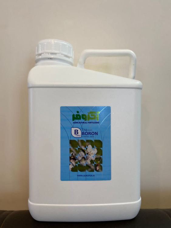 گیاهان به مقدار کمی بور نیاز دارند و جذب آن بهصورت یکی از فرمهای آنیونی انجام میشود. بور توسط گیاه از طریق ریشه جذب میشود و از طریق آوندهای چوبی به سمت برگها و سایر قسمتهای گیاه حرکت میکند. بور در فرآیندهای فیزیولوژیکی مختلف مانند تقسیم و افزایش طول سلول، متابولیسم کربوهیدرات و تثبیت نیتروژن نقش اساسی دارد. بور اتانول آمین 14 درصد اگروفر، کودی مایع حاوی 14 درصد بور به فرم کلات، اتانول آمین و مولیبدن است. اتانول آمین به جذب و انتقال عناصر غذایی در گیاه کمک میکند. در واقع اتانول آمین به عنوان یک عامل کلات کننده عمل میکند و به سایر عناصر غذایی ضروری مانند کلسیم، منیزیم و آهن متصل میشود و جذب آنها را برای گیاه آسانتر میکند. بور اتانول آمین شامل اثرات هم افزایی بور و اتانول آمین است که رشد و عملکرد گیاه را بهبود و جذب مواد مغذی را افزایش میدهد.